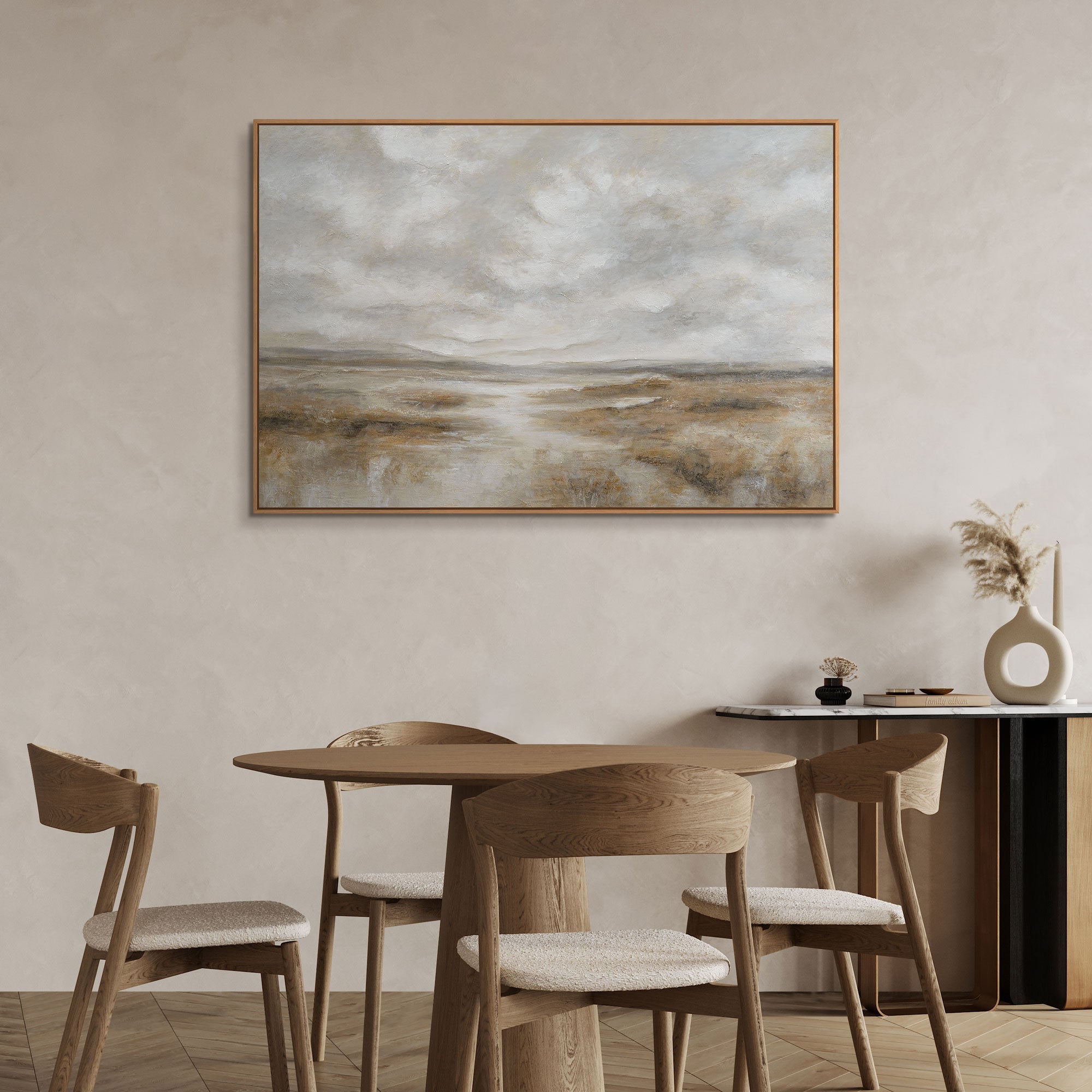 “Breath of the Steppe” is a canvas filled with silence and freedom. The soft shades of the gray-beige palette convey the vastness of the endless plains, where the sky and earth merge in a gentle light. Light brushstrokes create an airy effect, while the textured surface adds depth and realism. The painting conveys a sense of calm, balance, and harmony with nature.