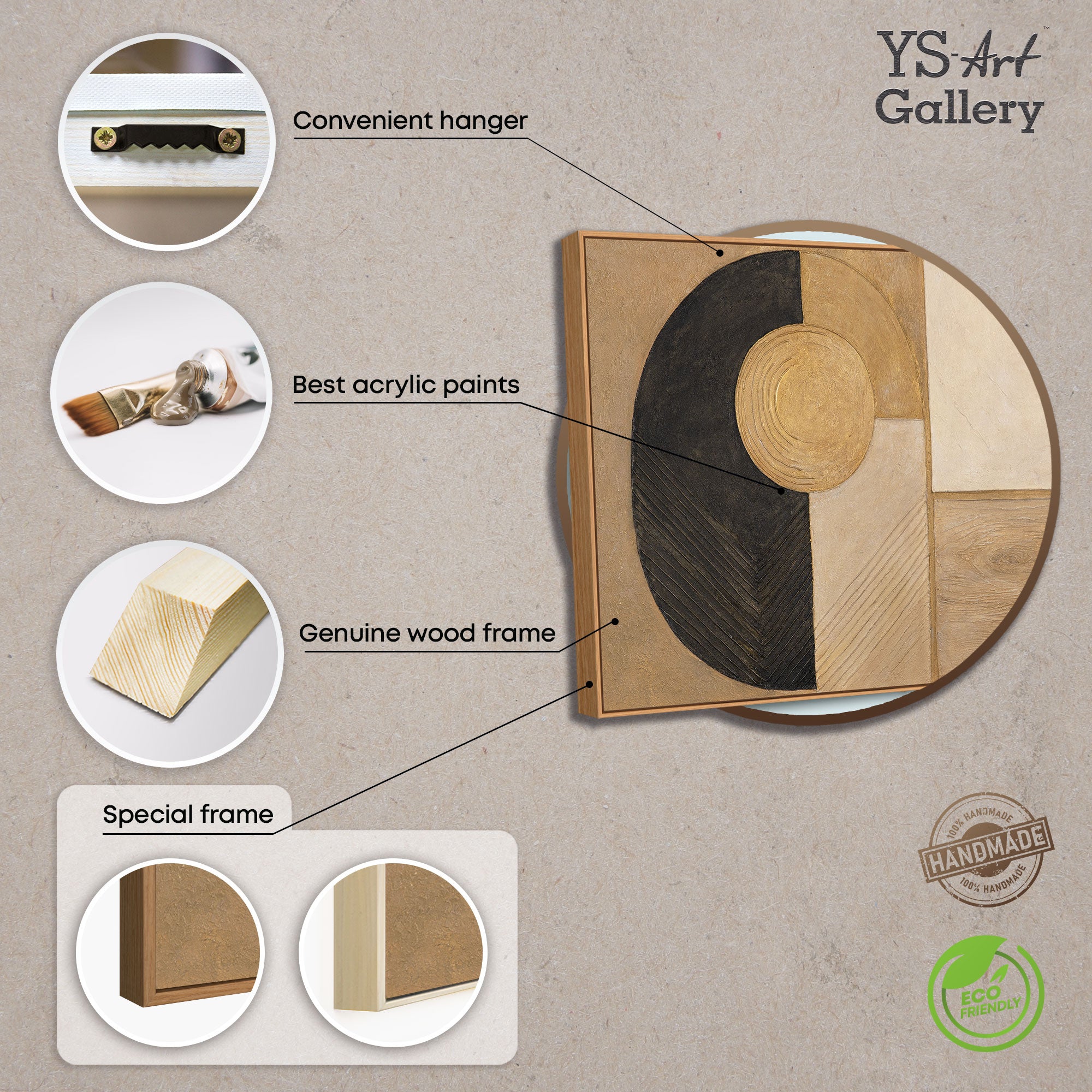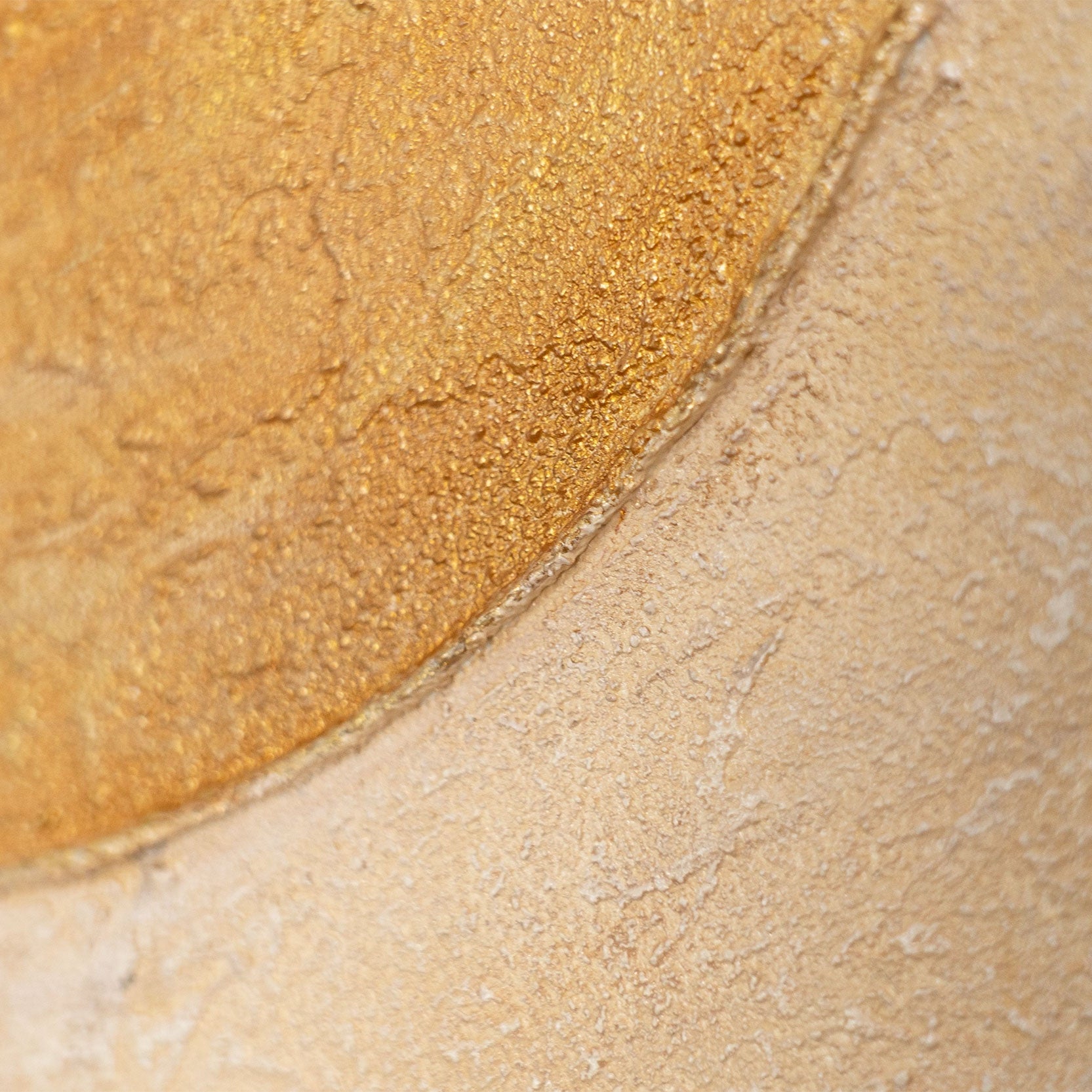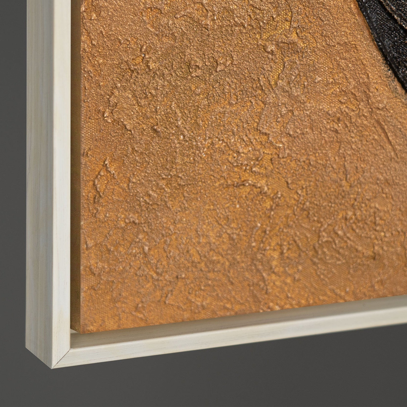 “Form and Texture” is a play of contrasts, where the rigor of geometry is combined with the lively materiality of the surface. Black semicircles, golden planes, and warm beige-sand textures create harmony between stability and movement. The painting embodies the sense of natural rhythm and balance inherent in contemporary abstraction.