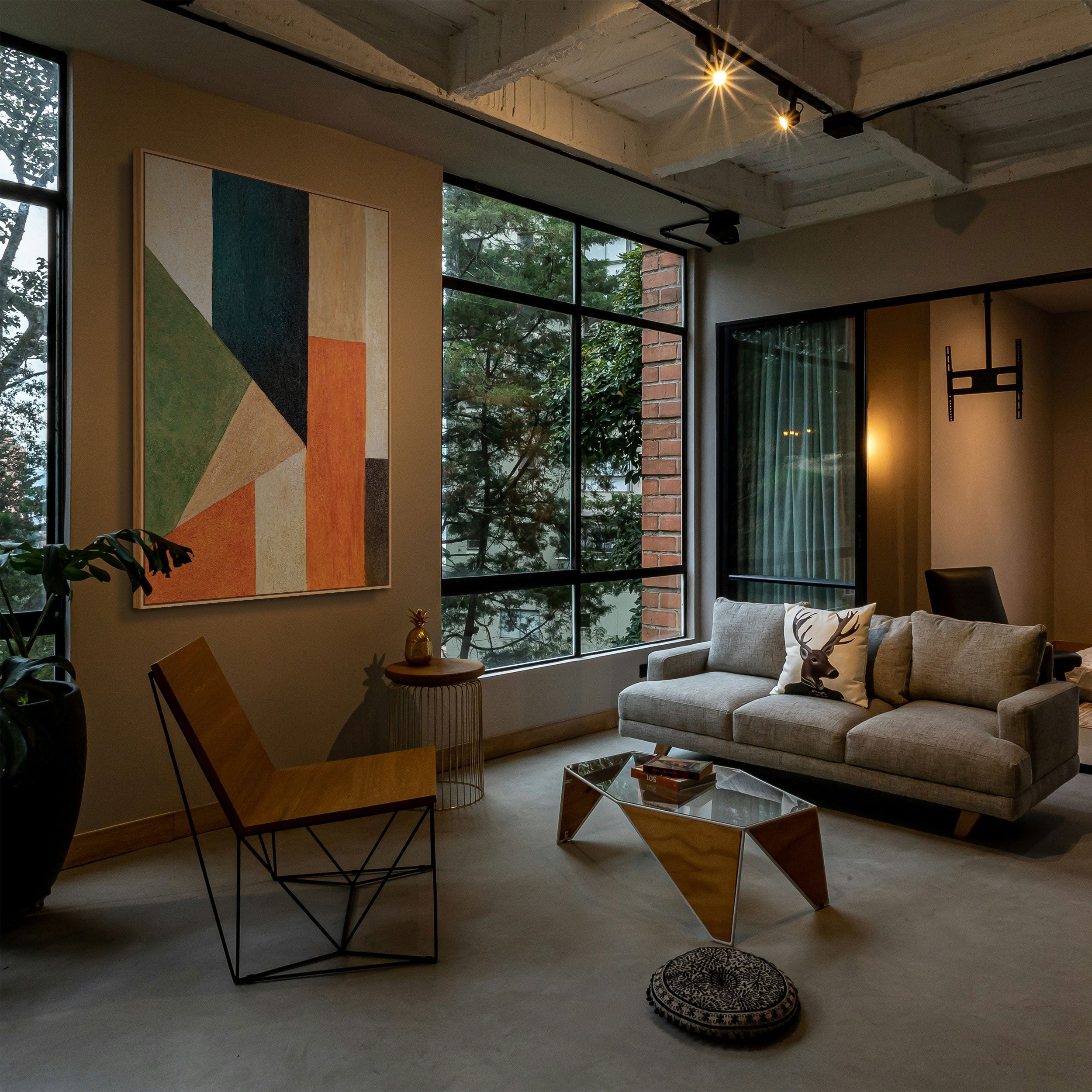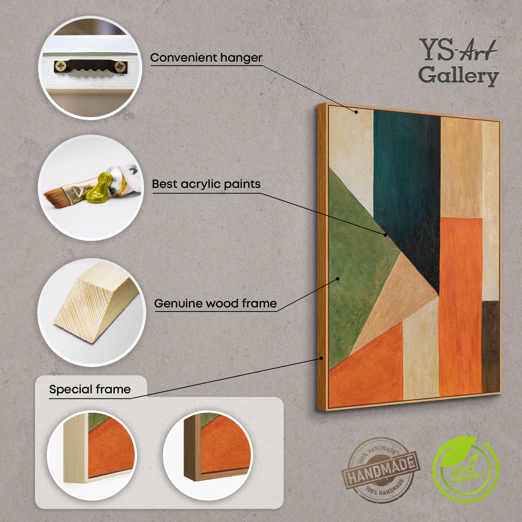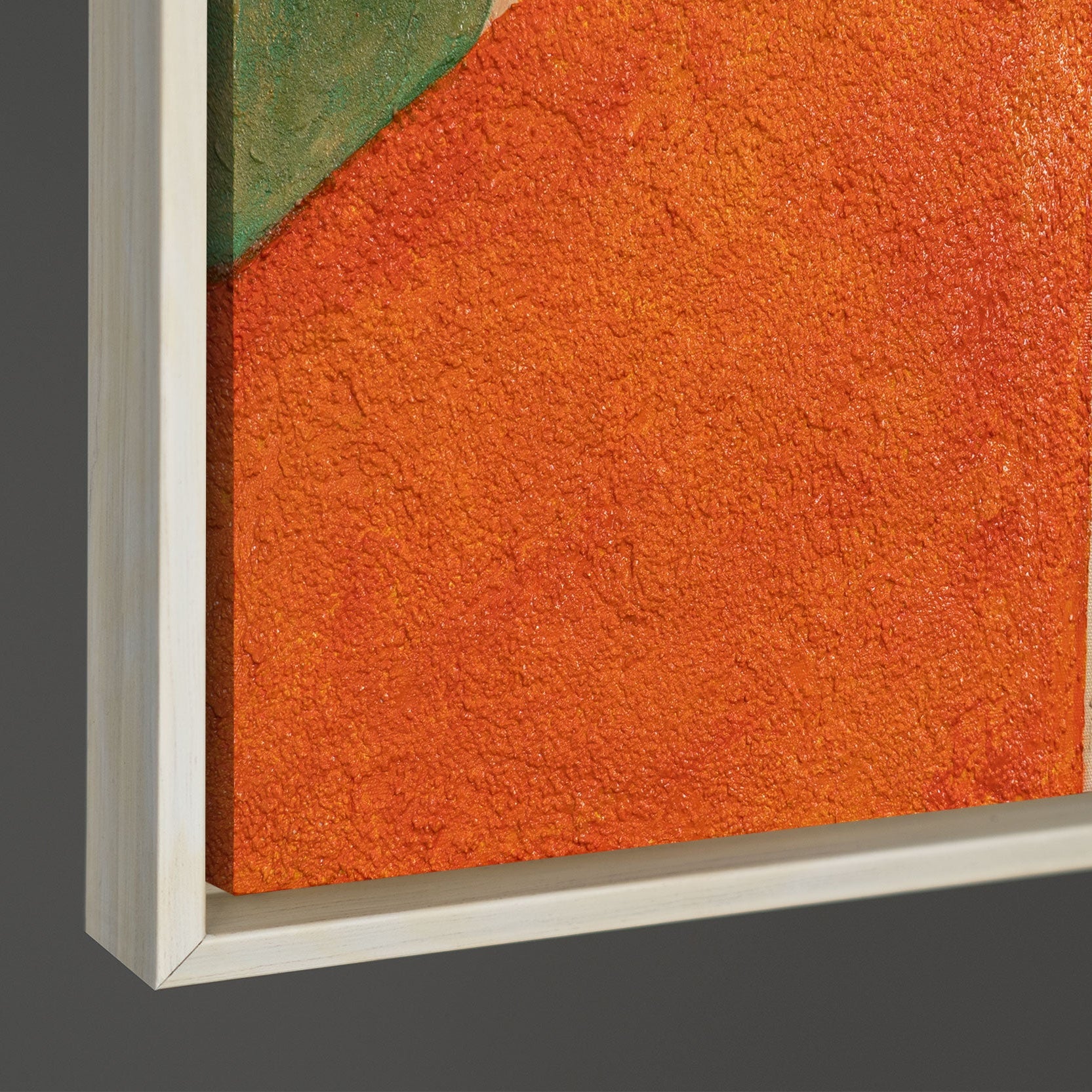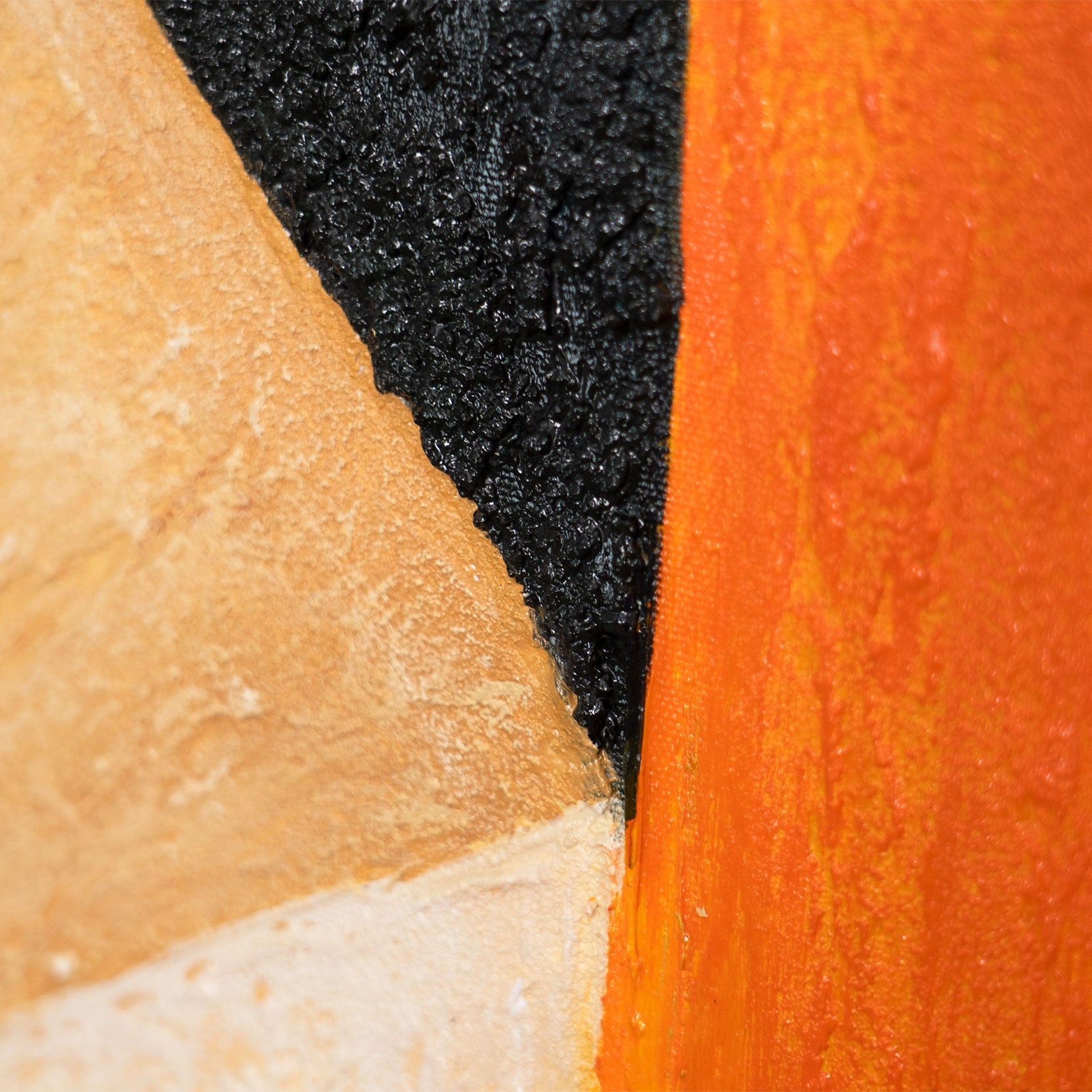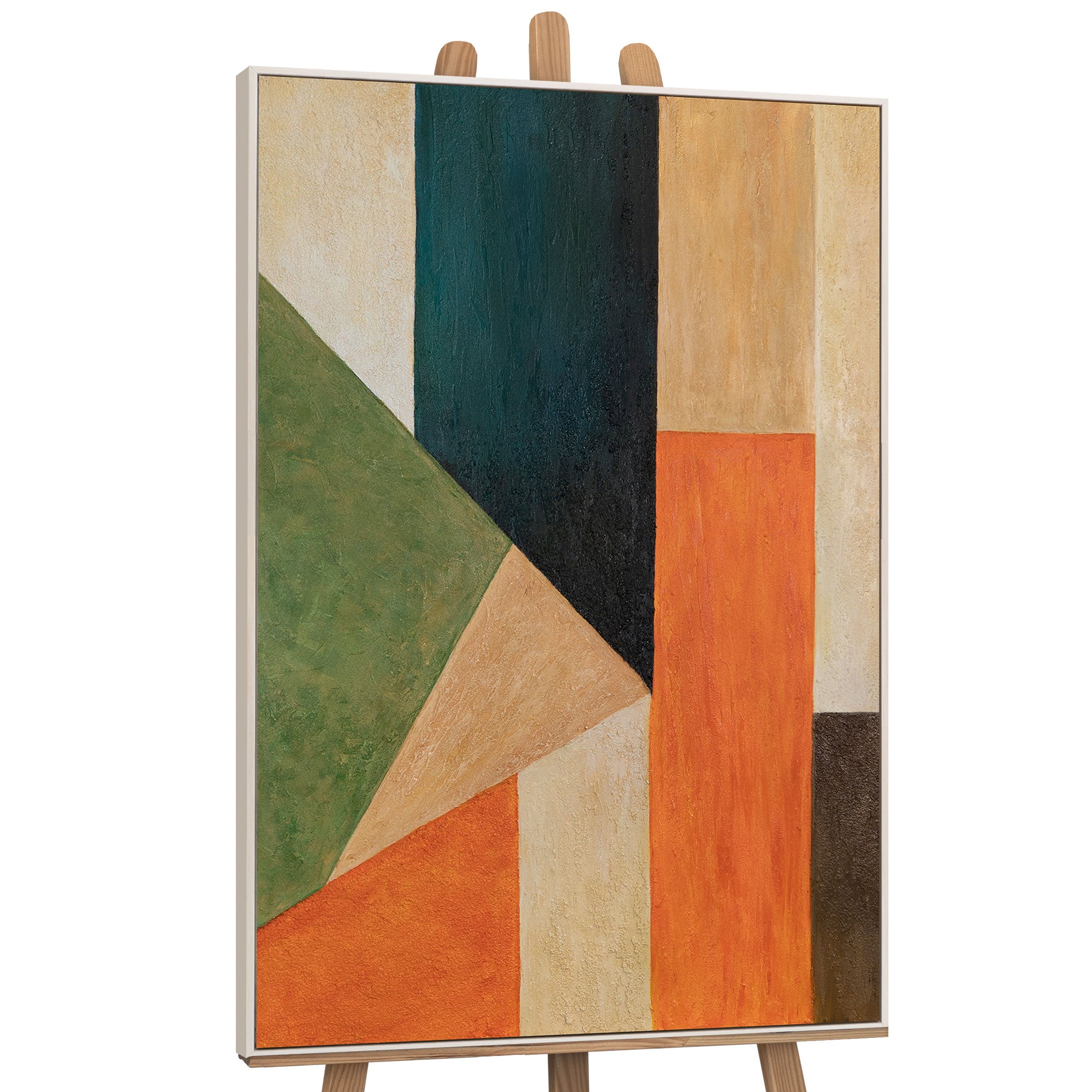 “Order and Movement” is a harmonious combination of geometry and color energy. Rich shades of green, orange, black, and sand create a dynamic yet balanced composition. Each plane has its own rhythm and texture, conveying both movement and stability.