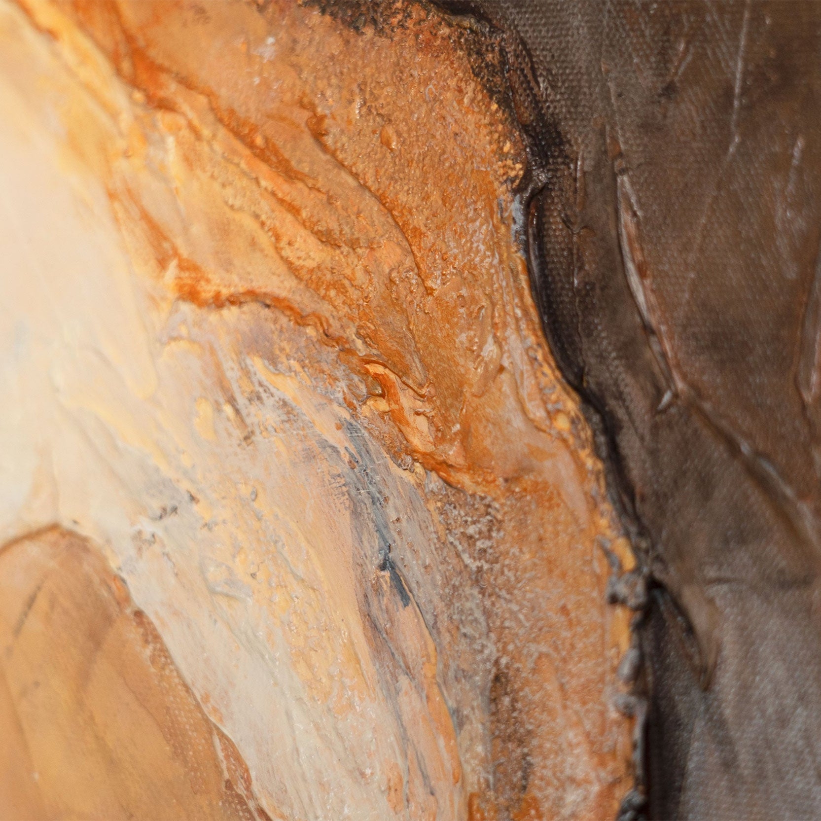 “Flash of Eternity” is an abstract painting in which warm shades of brown, orange, and red intertwine in dynamic motion. The composition resembles an explosion of energy, where light and dark layers create a sense of pulsation and endless movement. The textured surface of the canvas emphasizes the power of the brushstrokes and gives the work a distinct depth.