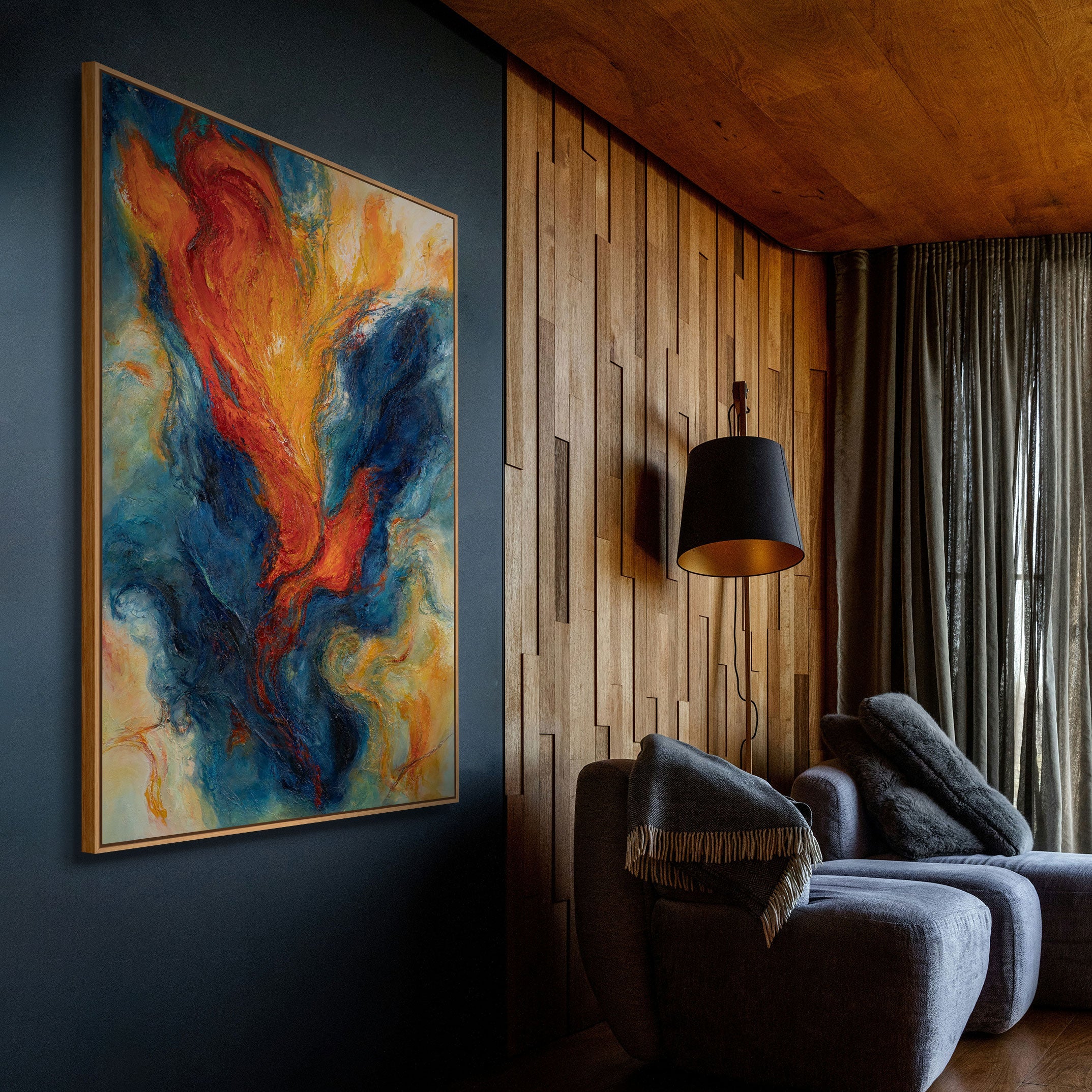 This work will become a powerful accent in a modern interior, giving it energy and a unique character. “Merging Energies” will emphasize the individuality of the space, creating an atmosphere of power, movement, and harmony.