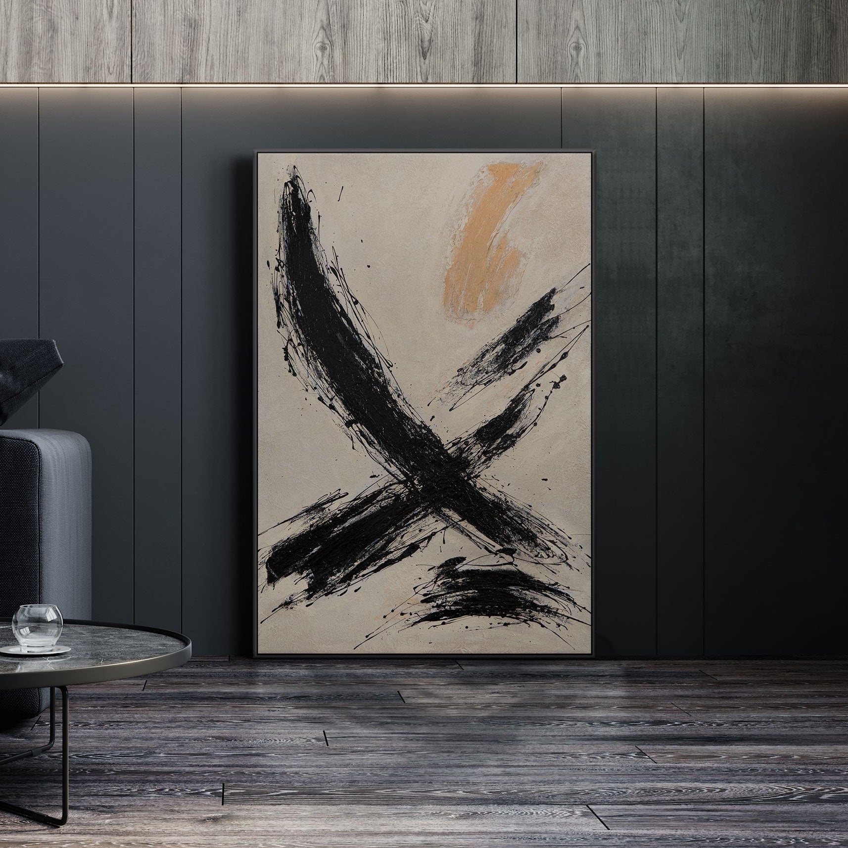 “The Power of the Brushstroke” is an explosion of emotions captured in black acrylic. Dynamic, sharp brushstrokes create a sense of energy bursting outwards. The textured surface and beige background add depth, allowing each brushstroke to live at its own pace. There is no randomness in this abstraction — only expression, action, and a sense of power.