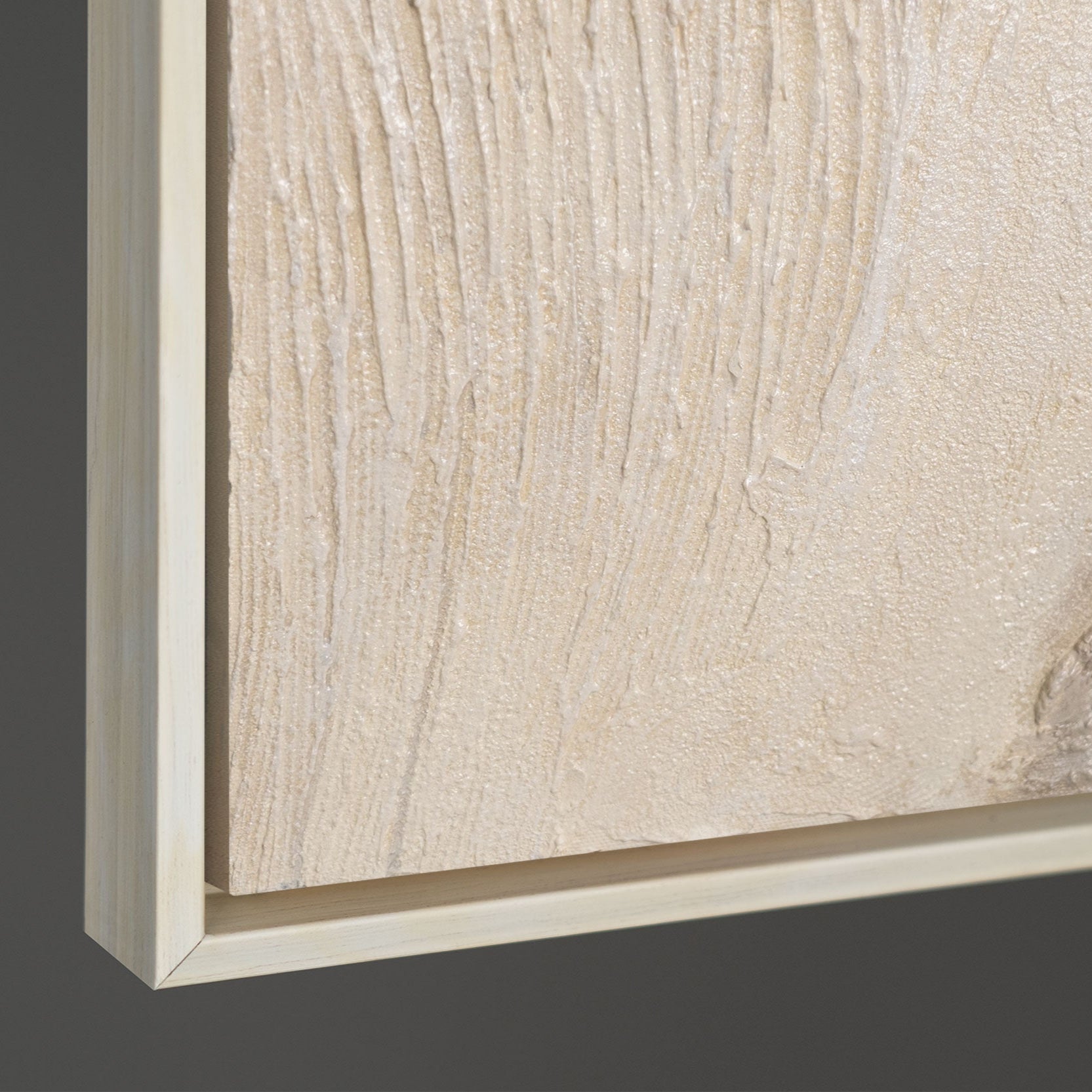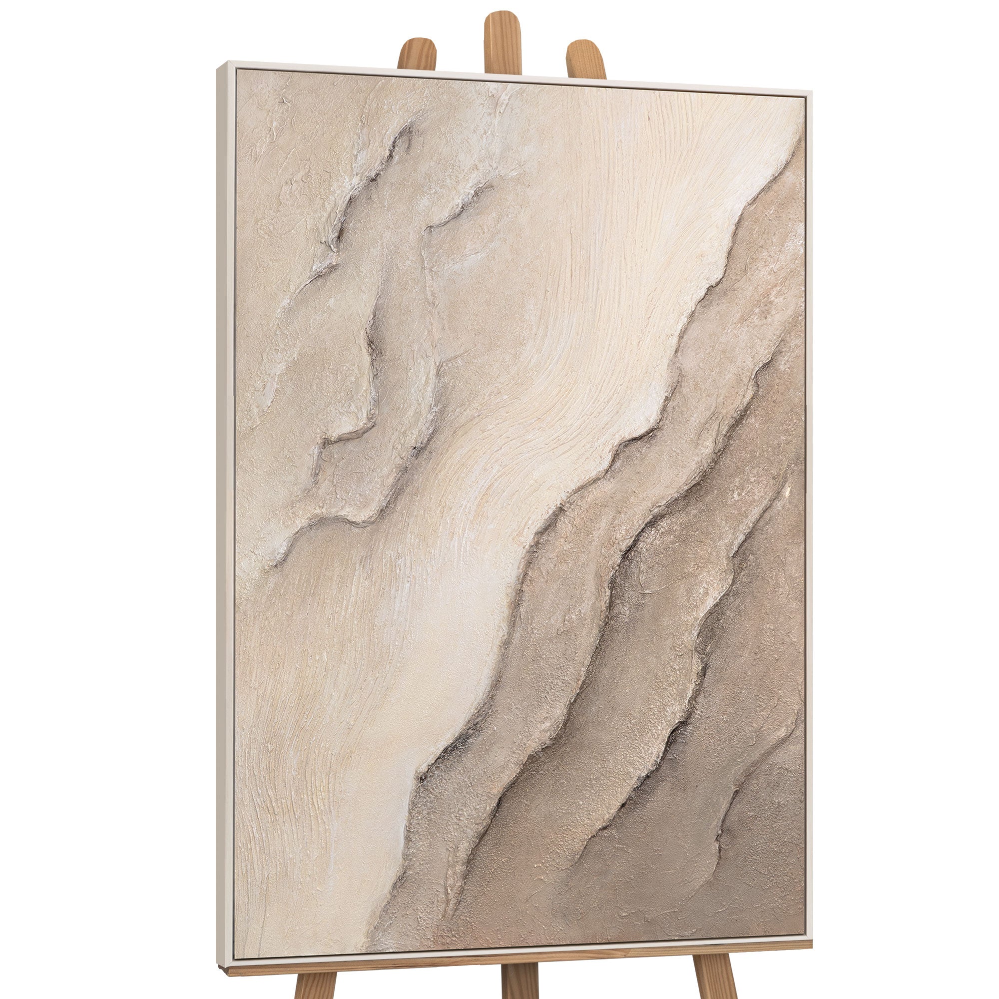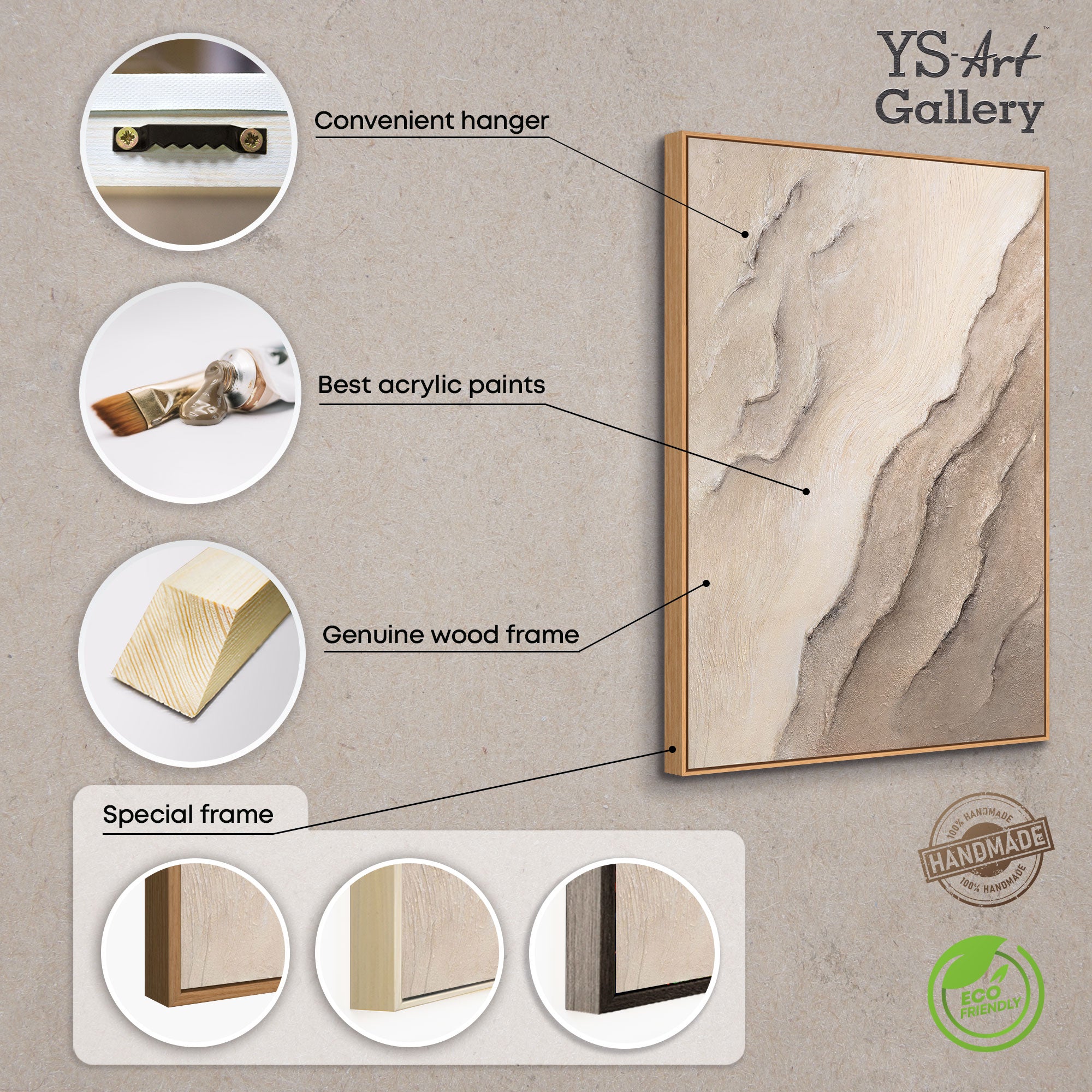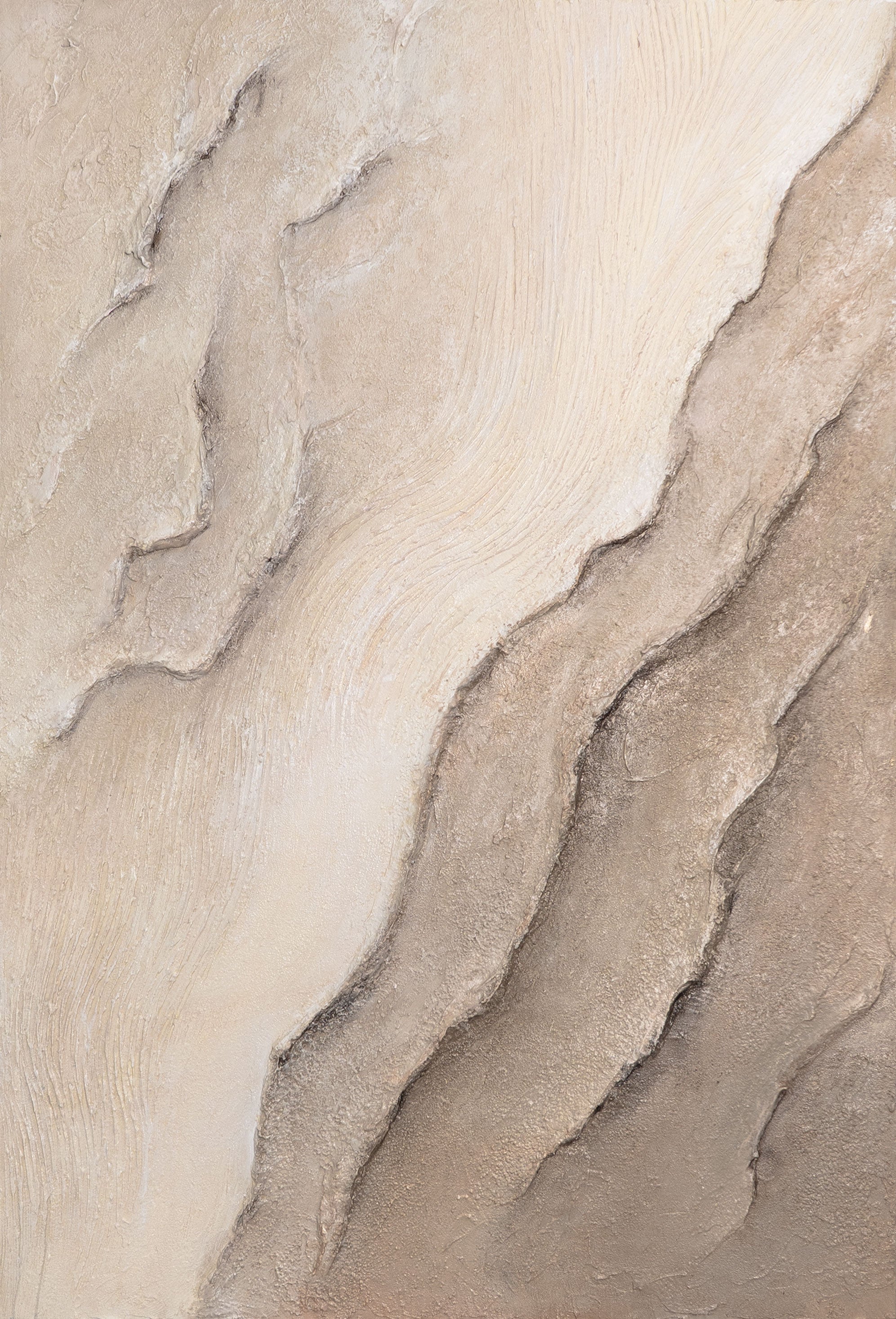 “Traces of Time” is an abstract work in a calm light beige palette, where smooth lines and textured surfaces resemble the imprints of wind and water on stone. Soft color transitions create an atmosphere of naturalness and harmony, while the relief texture emphasizes the play of light and shadow, adding volume and expressiveness to the painting.