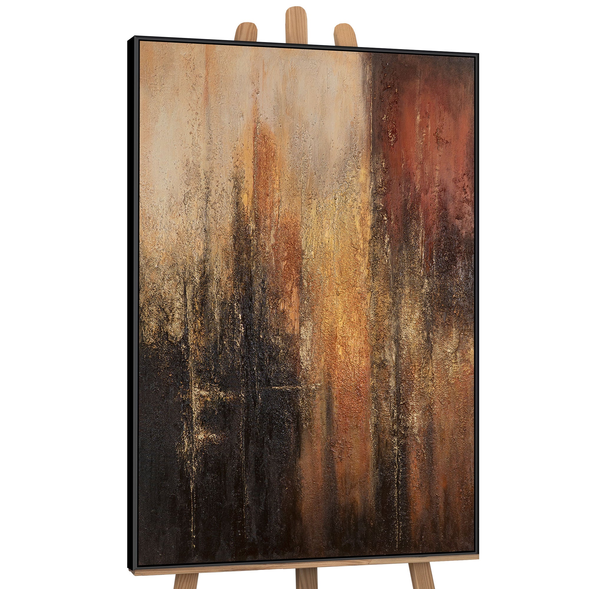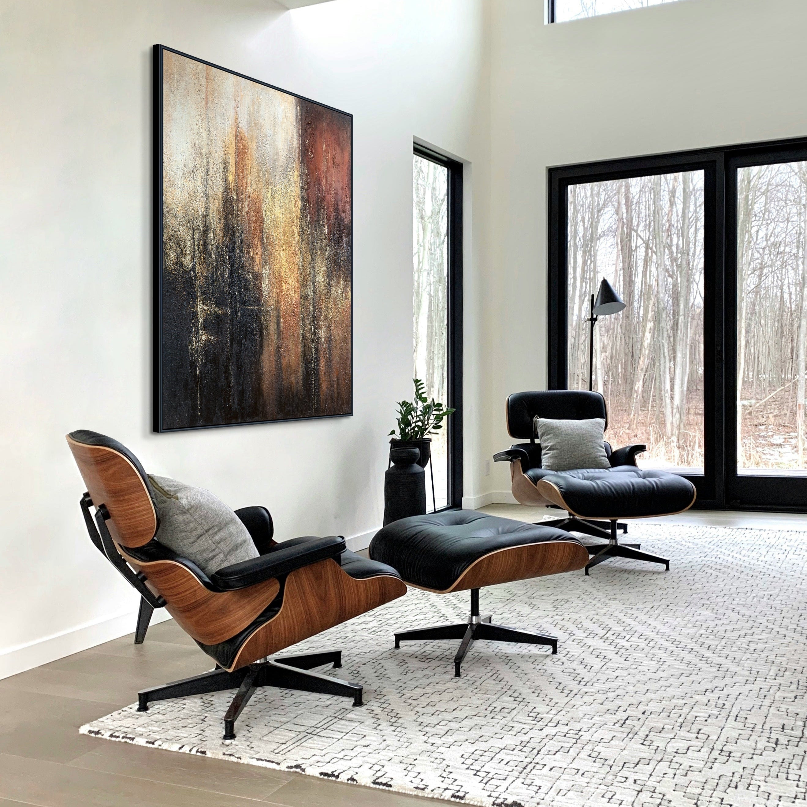 The canvas “Verticals of Time” will be a bright accent in a modern interior. It will add an atmosphere of power and grandeur, creating a harmonious combination of warmth and contrast in a living room, office, or art space.