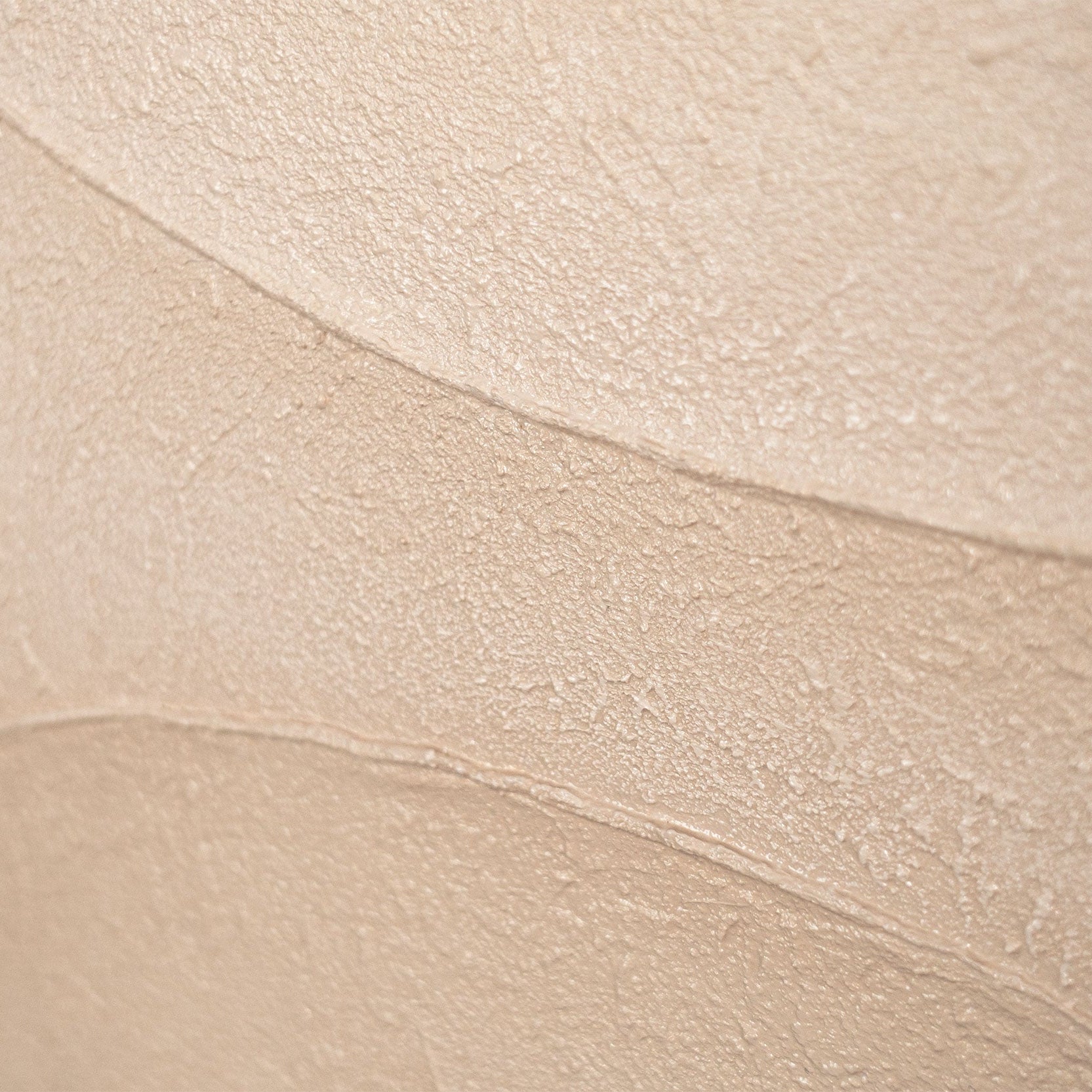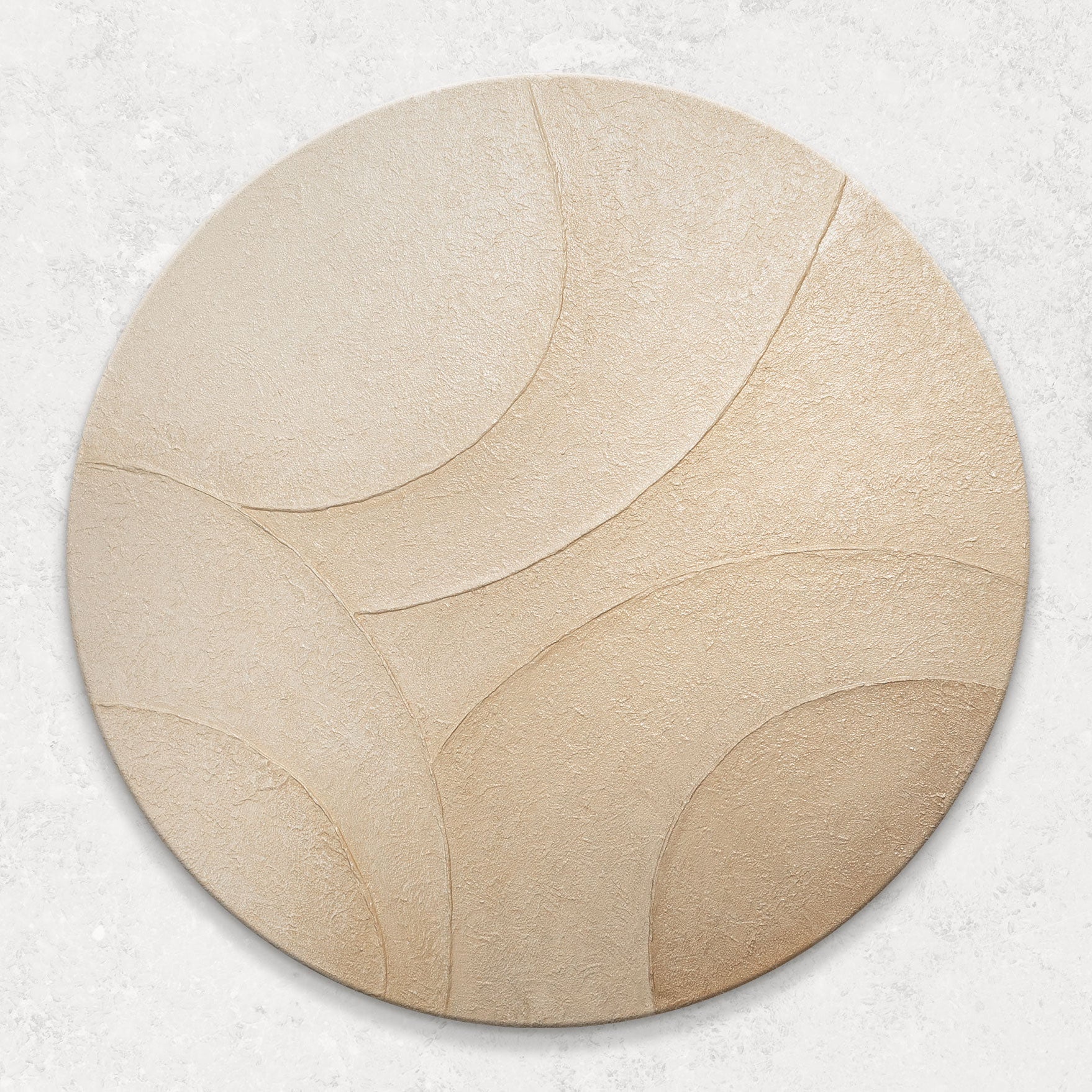 “Wind Ornament” is an abstract circular composition in which smooth lines create a natural rhythm of movement. Soft beige and sandy shades convey a feeling of lightness, as if the surface is touched by a gentle breeze. The play of light on the texture enhances the volume and creates a feeling of refined plasticity.